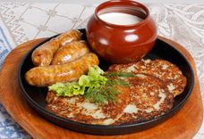 Жаренка с драниками и сметаной (150/30/150/100/2 г)